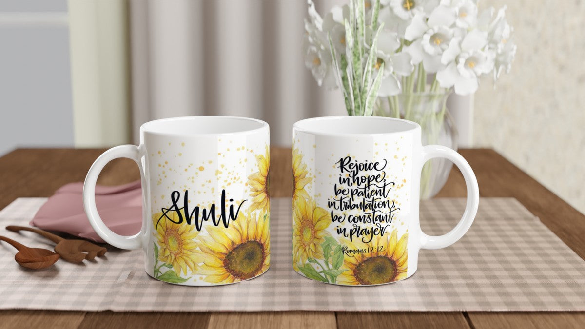 Celebrate someone special with a one-of-a-kind mug featuring hand-drawn Sunflowers and meaningful words of encouragement—bright, cheerful, and full of warmth